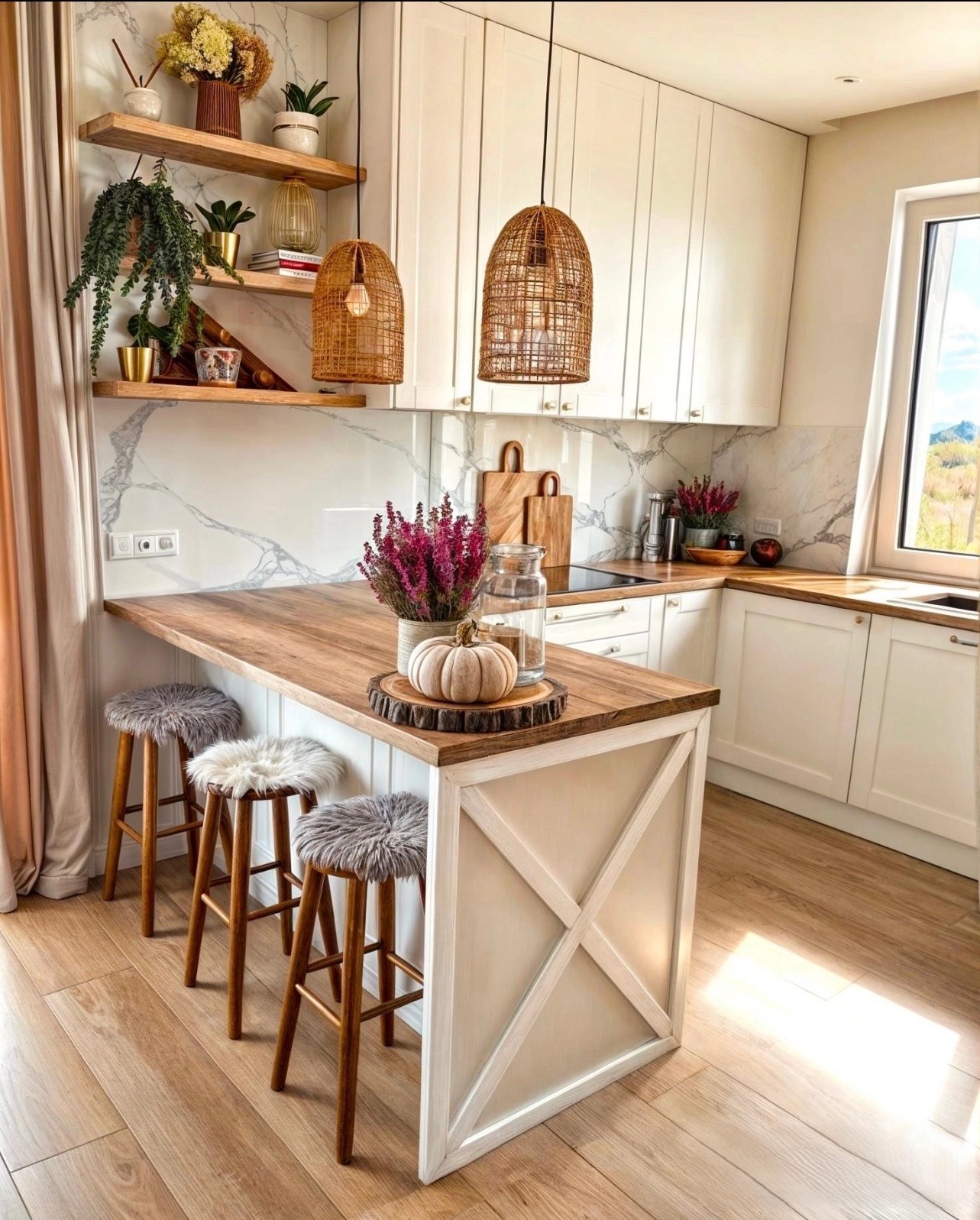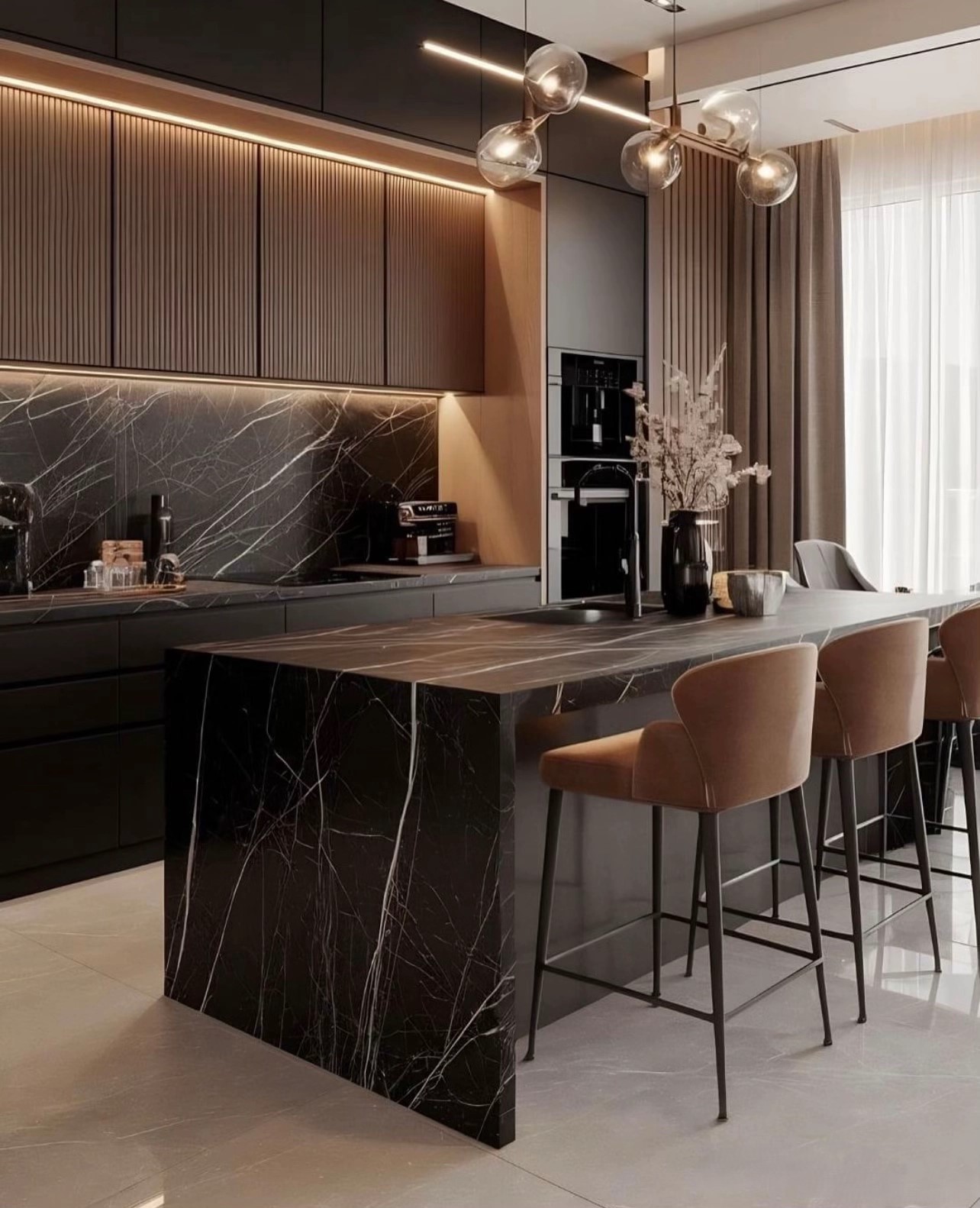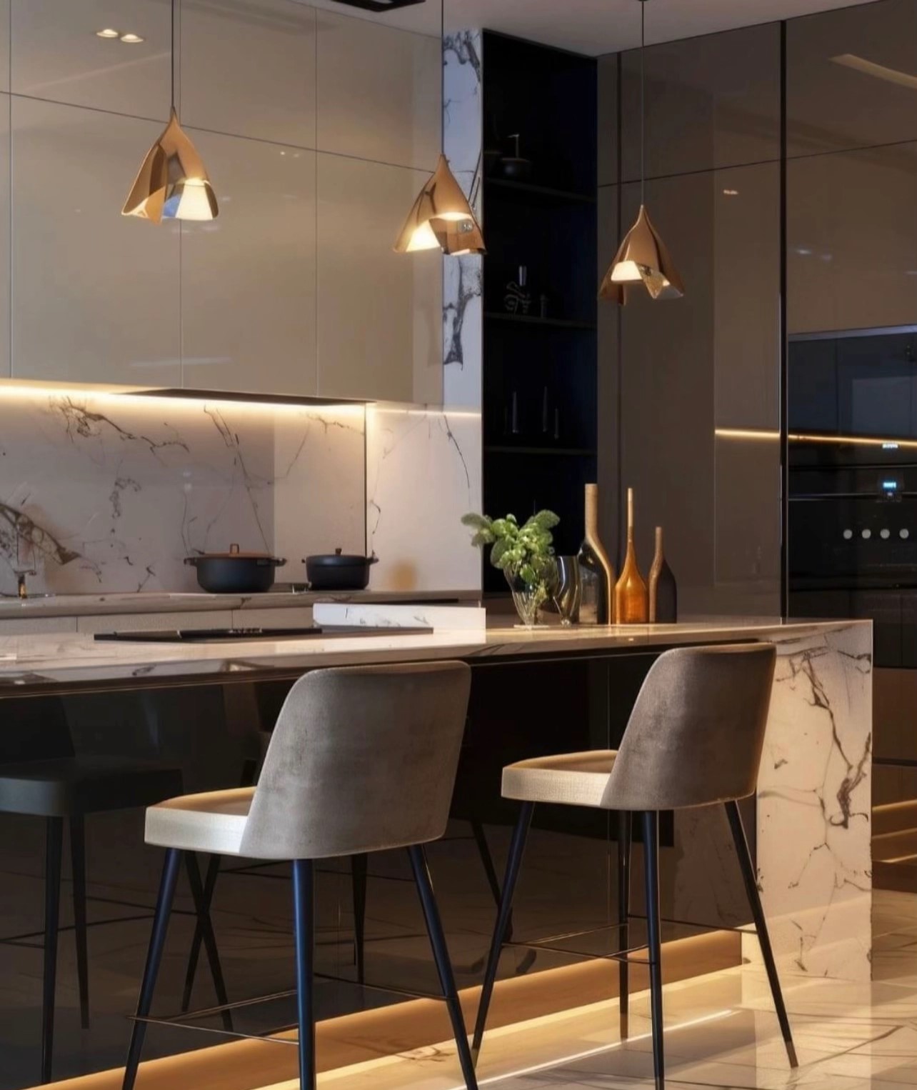 Phòng bếp được thiết kế theo phong cách mở, kết hợp với không gian ăn uống tiện nghi. Sử dụng vật liệu bền vững, màu sắc nhẹ nhàng cùng hệ thống lưu trữ thông minh, căn bếp không chỉ đẹp mà còn tối ưu công năng, mang đến trải nghiệm nấu nướng thoải mái và tiện lợi.